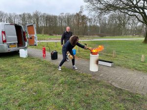 Het eerste deel van de training bestond uit levensreddende handelingen; reanimeren, verbinden, stikken en verslikken. Het tweede deel van de training bestond uit uit brand en ontruiming.