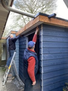 Op zaterdag 16 maart werd er buiten hard gewerkt op de Tinne! Er werd in het kader van NL Doet gewerkt aan de aanbouw van de schuur, zodat hierin straks de fietsen ed. opgeborgen kunnen worden. Ook werd er flink schoongemaakt rondom het huis. Mark was deze dag jarig, maar heeft naast dat hij feest heeft gevierd ook zijn fiets schoongemaakt. Vele handen maken licht werk!